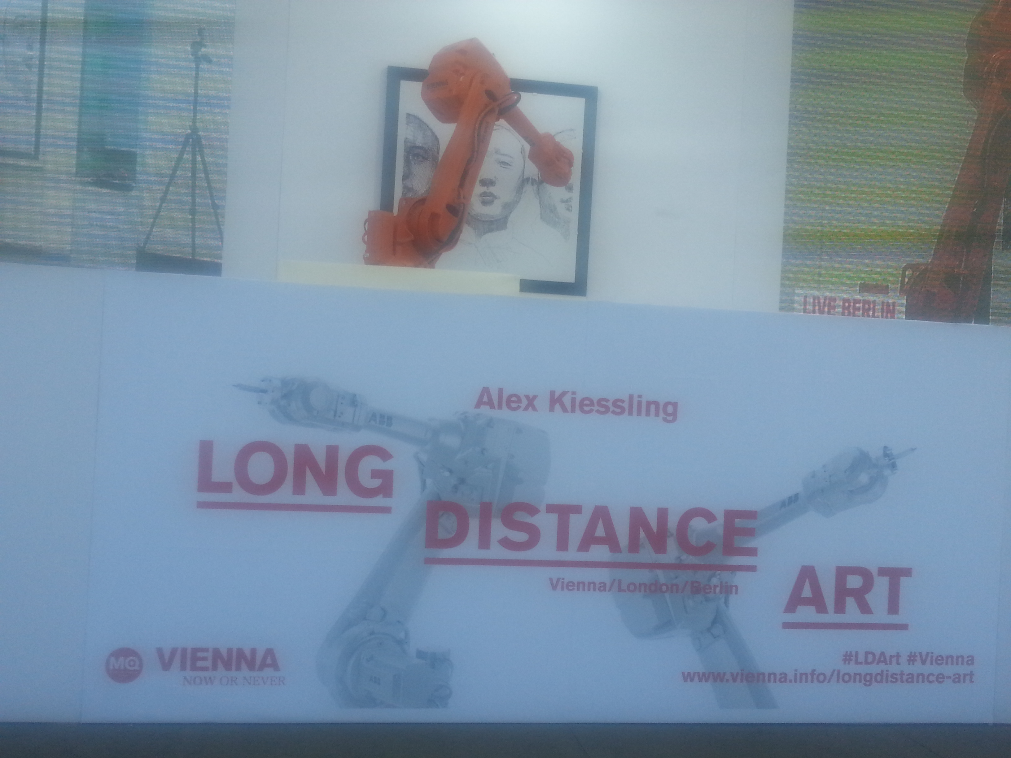 Ever heard of “Long Distance Art”? Well, Austrian artist, Alex Kiessling created 3 art works, in Vienna, London and Berlin simultaneously! How? Alex, located in Vienna, was aided by 2 industrial robots, one in Trafalgar Square, London, and the other in Berlin, both mirroring Alex’s actions in real time! I watched all 3 locations through live stream.